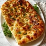 The flatbread is tender and slightly chewy on the inside with a golden, lightly crispy crust — the perfect balance!