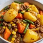 Keywords: Amish casserole, slow cooker recipe, ground beef casserole, comfort food, creamy casserole, harvest vegetables
