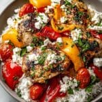 This Baked Chicken with Crispy Feta & Zesty Vinaigrette Delight is a flavorful and easy-to-make dish featuring juicy bone-in chicken thighs topped with a creamy, tangy feta and vinaigrette mixture. Baked to perfection at 400°F, the chicken becomes tender while the feta topping crisps up beautifully. Finished with fresh herbs and lemon wedges, this recipe is perfect for a quick yet impressive weeknight dinner.