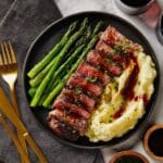 I promise you, once you try this Bavette Steak with Roasted Garlic Pan Sauce, Mashed Potatoes, and Asparagus Recipe, it will become a fast favorite in your dinner rotation. It’s the kind of dish that feels special but is surprisingly easy to pull off on a weeknight or for entertaining. The harmony of flavors and textures will keep everyone asking for seconds and you eagerly reaching for the recipe again.