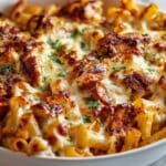 This BBQ Chicken Mac and Cheese is a comforting and flavorful twist on a classic favorite, combining tender shredded chicken coated in tangy BBQ sauce with creamy cheddar and mozzarella cheese sauce, all mixed with perfectly cooked macaroni. Ready in just 25 minutes, it’s a perfect weeknight dinner that satisfies both kids and adults alike.