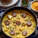 Keywords: Cajun potato soup, andouille sausage soup, creamy potato soup, spicy potato soup, Cajun cuisine, comfort food, hearty soup