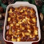 This Cardamom Pear Bread Pudding is a decadent and flavorful dessert featuring tender pears sautéed with warm spices and brandy, layered with crusty French bread cubes soaked in a spiced egg custard, then baked to golden perfection. Topped with a luscious orange cardamom caramel sauce, this comforting dish combines aromatic seasonings and rich textures for a delightful treat perfect for any occasion.