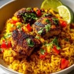 This Caribbean Chicken and Rice recipe combines tender, flavorful bone-in chicken thighs with vibrant vegetables and aromatic spices, all cooked together to create a hearty, comforting dish. The rice absorbs the savory broth and spices, resulting in a perfect one-pot meal that’s easy to prepare in under an hour.