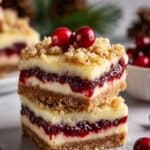 These Cherry Cheesecake Bars combine a buttery graham cracker crust with a smooth, creamy cheesecake filling and a sweet, tangy cherry topping. Perfectly baked and chilled to set, they make a festive and indulgent dessert that’s easy to slice and serve for any occasion.