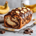 This ultra-moist chocolate swirl banana bread blends the richness of cocoa with the natural sweetness of ripe bananas. Finished with banana slices and a dark chocolate drizzle, it’s perfect for breakfast or dessert.