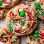 Keywords: Christmas cookies, kitchen sink cookies, holiday cookies, festive cookies, M&M cookies, white chocolate cookies, sweet and salty cookies