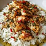PrintCreamy Lemon Garlic Chicken Scampi with Rice Recipe