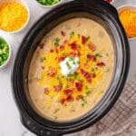 Set your crockpot to low for 6 to 8 hours, or if you’re short on time, high for 3 to 4 hours. What you’re waiting for is the potatoes becoming tender and fully infused with the creamy broth, creating that crave-worthy silky texture we love in a potato soup.