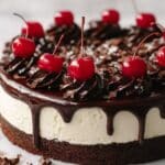 Keywords: Black Forest cheesecake, chocolate cheesecake, cherry cheesecake, baked cheesecake, chocolate ganache, dessert recipe