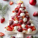 This Festive Pavlova Tree is a delightful and show-stopping dessert perfect for holiday celebrations. Featuring a crisp, airy meringue shaped like a Christmas tree, it is filled with luscious whipped cream and topped with fresh strawberries and passionfruit pulp for a vibrant, fruity finish. Lightly dusted with icing sugar, this pavlova creates an impressive centerpiece that combines texture, flavor, and festive charm.