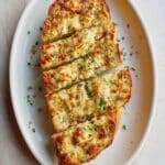 This garlic bread recipe features a rich and flavorful garlic butter made from garlic confit, salted butter, parsley, and pecorino romano. Spread generously on ciabatta bread, topped with mozzarella and extra cheese, then grilled to golden bubbly perfection. Finished with a drizzle of honey, chili flakes, and fresh parsley, this garlic bread is an irresistible snack or side dish that’s quick to prepare and perfect for sharing.