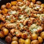 For an irresistible golden crust, sprinkle additional Parmesan cheese over both the chicken and potatoes in the last five minutes. Then switch your oven to broil to achieve that perfectly bubbly and toasted finish—just keep a close eye to prevent burning.