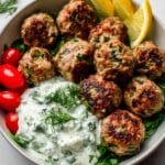 Keywords: Greek chicken meatballs, tzatziki sauce, baked meatballs, healthy chicken recipe, Mediterranean chicken meatballs