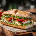 This sandwich is a true celebration of bold, fresh flavors and contrasting textures. From the tender grilled chicken to the creamy avocado and peppery arugula, every ingredient contributes something special. The crusty, toasted ciabatta roll holds everything together while adding satisfying crunch. It’s quick to assemble, endlessly customizable, and perfect for a wholesome lunch, picnic, or weeknight dinner.