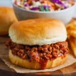 Keywords: ground turkey sloppy joes, healthy sloppy joes, turkey sandwich recipe, easy weeknight dinner, ground turkey recipes