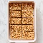 Pressing the mixture firmly into the pan and allowing them to cool fully before cutting helps them hold together nicely.