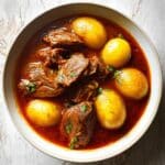 A comforting and hearty beef and potato stew, slow-simmered to tender perfection in a flavorful broth enriched with aromatic spices, shallots, and tomato paste. This classic dish is perfect for cozy meals and pairs wonderfully with crusty country bread.