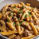 PrintHigh Protein Creamy Beef Pasta Recipe