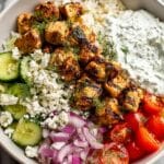 - Add Chicken and Sauce: Top each bowl with the cooked lemon-dill chicken cubes and a generous spoonful of tzatziki sauce.
