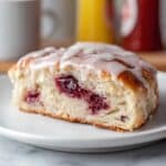 9. Fill Holes with Jam: While still warm, use a small spoon to fill each hole generously with more raspberry preserves, letting the heat melt the jam into the soft bread.