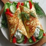 This Irresistible Cottage Cheese Wraps recipe is a delicious and healthy option perfect for a light meal or snack. These wraps feature a protein-packed cottage cheese crepe base, baked to perfection and filled with fresh mozzarella, arugula, roasted red peppers, cucumbers, avocado, and basil, finished with a tangy drizzle of balsamic glaze. Easy to prepare and full of vibrant flavors, these wraps offer a delightful combination of creaminess, freshness, and a subtle Italian seasoning twist.