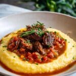 7. Finish and Serve: Remove the bay leaves and adjust seasoning with salt and pepper as needed. Serve hot over polenta, pasta, gnocchi, or mashed potatoes.