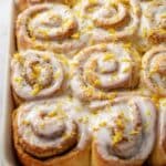 - Cool and glaze. Let rolls cool 10–20 minutes, then spoon icing over and sprinkle fresh lemon zest on top before serving.