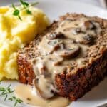 To reheat, thaw overnight in the fridge if frozen. Warm the meatloaf gently in the oven at 325°F (160°C), covering it loosely with foil. Heat the mushroom gravy on the stovetop over low heat, stirring occasionally until warmed through and silky again.