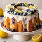 Serve this cake on a white porcelain platter for elegance or a rustic wooden board for a charming casual vibe. Drizzle extra lemon glaze on the plate and scatter berries around for a restaurant-worthy display.