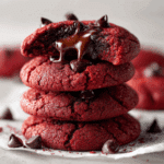 Molten red velvet chocolate chip cookies combine the drama of a lava cake with the ease of a classic cookie. Rich, chewy, and filled with gooey chocolate, they’re a delightful treat for chocolate lovers and a stunning addition to any dessert table. Perfect for holidays, parties, or just indulging your sweet tooth—these cookies are sure to become a favorite.