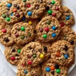 Classic Monster Cookies loaded with oats, peanut butter, mini M&Ms, and mini chocolate chips for a chewy, colorful treat that’s perfect for parties or snack time.