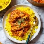 A flavorful and aromatic Moroccan Chicken Stew featuring tender chicken thighs simmered in a rich sauce of fire-roasted tomatoes, warm spices, ginger, garlic, and sweet medjool dates. This hearty stew combines spices like cumin, cinnamon, paprika, coriander, and turmeric for authentic Moroccan flavor, finished with fresh parsley for brightness. Perfect for a comforting meal that serves 6.