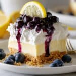 This No Bake Lemon Blueberry Dessert is a refreshing layered treat featuring a graham cracker crust, creamy lemon pudding filling, sweet blueberry pie topping, and a light whipped cream finish. Perfect for warm days or when you want a quick, easy dessert without turning on the oven.