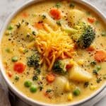 Keywords: creamy vegetable soup, one pot soup, cheesy vegetable soup, vegetarian soup, comfort food, easy soup recipe
