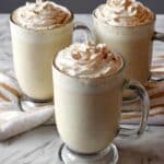 Serve in clear glass mugs to showcase the creamy golden hue, drizzle a bit of white chocolate sauce on top, or add a cinnamon stick as a stirrer—both visually striking and delicious!