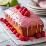 Keywords: Key lime cake, raspberry glaze, citrus dessert, loaf cake, moist cake, summer dessert