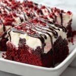 How to Serve Red Velvet Poke Cake with Fudge Brownie Layer and Cream Cheese Topping Recipe