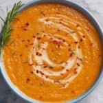 This Roasted Vegetable Soup is a smooth and creamy blend of caramelized onions, garlic, peppers, sweet potatoes, tomatoes, and carrots, seasoned with fragrant herbs and finished with a touch of cream. Perfect for a comforting meal, this nutritious soup highlights the natural sweetness and depth of roasted vegetables.