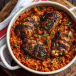 Spicy Jollof Rice with Grilled Chicken is more than just a meal — it’s a bold, vibrant dish rooted in West African culinary tradition. The slow-simmered tomato and pepper base infuses the rice with deep, smoky flavor, while the grilled chicken adds juicy, savory richness. It’s a one-pot rice dish that delivers complex flavor with simple ingredients, and it’s perfect for festive gatherings, Sunday dinners, or everyday comfort food with flair.