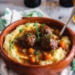 Enjoy these delicious Stuffed Meatballs in Guinness Gravy, a hearty and comforting Irish-American dish perfect for any occasion beyond St. Patrick’s Day. Juicy meatballs stuffed with Dubliner cheese are pan-fried or baked to golden perfection and simmered in a rich, savory Guinness-infused gravy made with fresh vegetables, herbs, and a touch of brown sugar. Serve over creamy Colcannon or mashed potatoes for a satisfying meal.