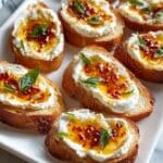This Sweet and Spicy Whipped Feta Crostini with Hot Honey Bliss is a delightful appetizer combining creamy whipped feta and cream cheese with a hint of heat from red pepper flakes and a sweet drizzle of honey. Toasted baguette slices provide the perfect crunchy base, making it an ideal party snack or elegant starter ready in just 20 minutes.