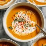For entertaining, serve the soup in individual hollowed-out mini pumpkins or colorful bowls to make the vibrant orange color pop. Add layers by swirling toppings artistically and garnishing with edible flowers or microgreens for a restaurant-worthy look.