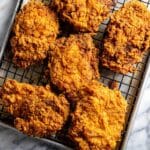- Cook Other Side: Fry the second side for another 5 minutes or until both sides are golden brown and crispy. Remove steaks and transfer to the wire rack on the baking sheet placed in the preheated oven to keep warm. Repeat with remaining steaks.