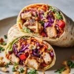 This Thai Chicken Wrap with Crunchy Asian Slaw is a flavorful and vibrant meal featuring juicy marinated chicken thighs, a tangy and creamy peanut sauce, and a crisp colorful slaw. Wrapped in soft tortillas, these wraps offer a perfect balance of savory, sweet, spicy, and fresh elements for a quick and satisfying dinner or lunch.