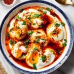 Turkish Eggs is a delicious and creamy breakfast or brunch dish featuring poached eggs served over a garlicky yogurt spread, topped with a warm, spiced Aleppo pepper butter drizzle. This traditional Turkish recipe combines smooth, tangy yogurt with perfectly poached eggs and a flavorful buttery sauce, making it a comforting and elegant meal.