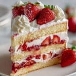 Keywords: vanilla cake, strawberry shortcake, whipped cream, macerated strawberries, classic dessert, layered cake