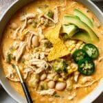 Keywords: white bean chili, chicken chili, easy chili recipe, stovetop chili, healthy chili, comfort food